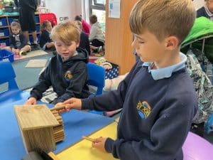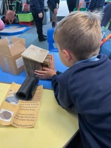 In Breakfast Club this morning, the children made a bee nesting house which they filled up with tubes and covered with a waterproof covering.