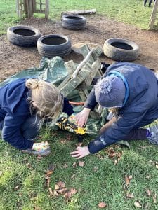 We braved the mud and the cold to enjoy another Forest School session. This time, we learnt about safely using a saw and drill. Miss Monks helped us to saw a piece of wood and then drill a small hole into which we place some foliage to make a Christmas tree! The rest of the time was spent building dens and playing in the mud!