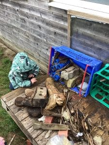 Forest school this week was creating our bug hotel in nursery, the children were asked to find sticks, stones, straw, grass and leaves to make a home for the bugs in our back garden. We will keep you all posted if we have anything move in to it over the spring and summer months.