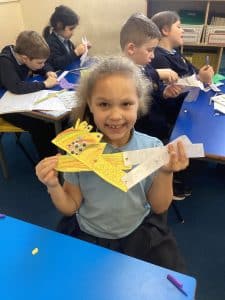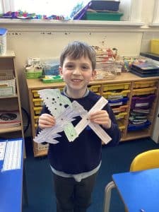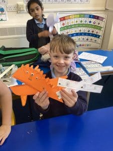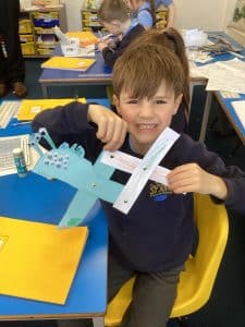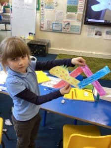 This week, we made our moving monsters in DT! We decorated the individual parts then joined them together using split pins to make the linkage system. In Science, we’ve learnt about the importance of protecting ourselves and others by covering our noses and mouths when we cough or sneeze. To demonstrate how easily germs travel, our teachers sprayed some green water onto paper, then the second time, we covered the paper with paper towels and stopped the spread of the ‘germs’! In Geography, we learnt about the difference between rural and urban areas.